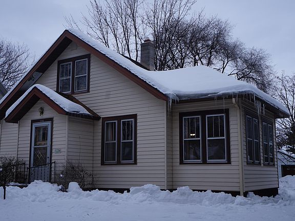 Classic, 3 bedroom home with all original woodwork, paneled doors, and banister staircase. Woodwork is in excellent condition. Large, eat-in kitchen has walk-in pantry and built-in cabinet, as well as original porcelain sink. Spacious sunroom has French doors which are currently stored in the attic space. Hardwood floors and carpeting on main floor. There may be additional hardwood floors underneath the carpeting. Bathroom has tiled walls. Home boasts 9' ceilings throughout, as well as metal, maintenance-free siding, fascia, and soffits and rain gutters. Home includes front foyer as well as a mudroom off of the kitchen and enclosed back porch. Built in linen closet in hallway by bathroom. Additional hobby room in the basement as well as additional, potential work space. This home will require conventional financing or cash to purchase, as it needs new shingles and some other updating. More photos will be uploaded after personal property is removed.