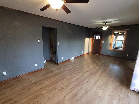 New to the market! 1.5 story home with attached 3 stall garage located on large 150 x 140 corner lot. This home has enclosed front porch, open living & dining room area, galley kitchen, 2 main floor bedrooms and full bath. Upper level attic has been totally finished into spacious bedroom with built in drawers-great for kids! Basement is unfinished with poured concrete walls, tiled, sewer line has pvc from under the house to the street. The empty lot to the north has sewer & city water capped off. Enclosed front porch, attractive/insulated breezeway with electric heat plus you will appreciate the spacious garage (38x 24). Updated windows (2017), new FA furnace & CA (2020), water heater (2 yrs), Pergo waterproof laminate flooring installed throughout the main floor.