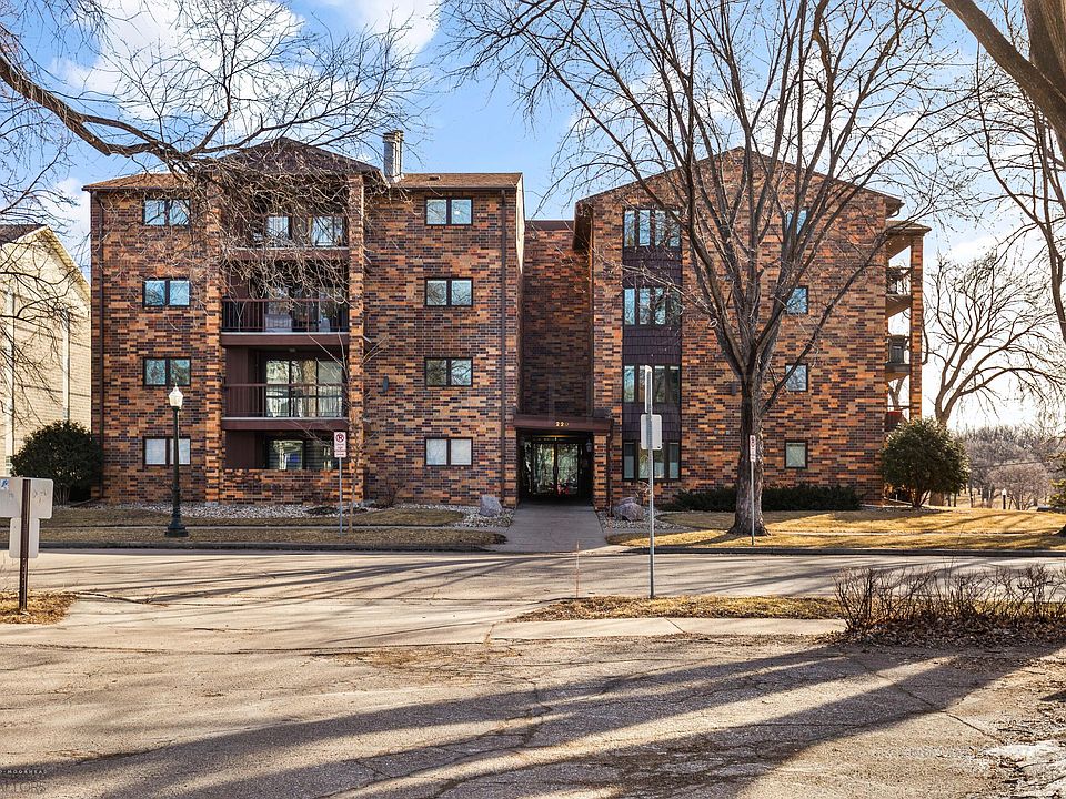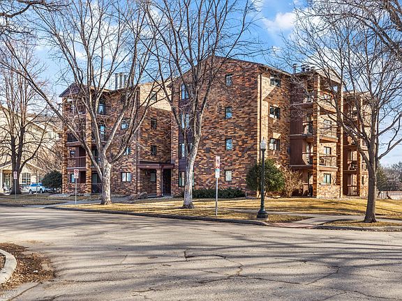 Highly sought after 8th St. location near Downtown and Island Park! The charming brick building is surrounded by mature trees and offers a secure entry, inviting lobby, workout area, extra storage, 2 heated parking spaces and an elevator. This fully renovated 4th floor unit offers 2 beds, 2 baths, open concept living space with a HUGE quartz island, cozy brick fireplace and great storage. Unwind and enjoy the view from the private covered deck!