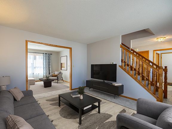 This inviting two-story, four-bedroom, three-bath home offers just over 2,100 finished square feet of comfortable living space. It's also pre-inspected, giving you added peace of mind. Recent updates, including fresh paint and new carpet throughout, enhance the home's warmth and charm. Additional upgrades in 2021 include replaced windows, a new front door, service door, and deck slider, along with durable double-hung tilt-in windows for easy cleaning. The porch showcases upgraded vinyl siding and decorative shutters, while accented stonework on the front of the garage adds to the home’s character. Inside, the main floor is designed for both function and comfort. The spacious kitchen features granite countertops, ample storage, a stylish tile backsplash, and easy access to the large deck, and open flow to the family room, complete with a cozy inset gas fireplace, perfect for entertaining. The main floor also includes a bright and spacious living room and the convenience of main-floor laundry. Upstairs, all four bedrooms are thoughtfully arranged, including the spacious primary suite with a walk-in closet for extra storage and private bath. An additional full bathroom serves the remaining bedrooms. The unfinished walkout lower level offers flexibility to customize to your needs. Outside, a quaint front porch welcomes you home, while the beautifully landscaped backyard features perennial gardens, landscaping beds, a relaxing patio, and plenty of space to enjoy.