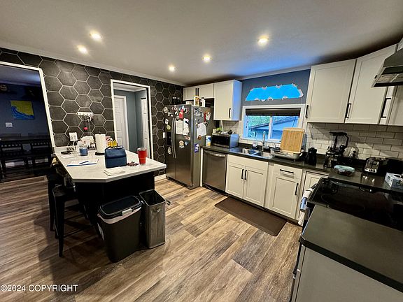 Investment opportunity! Recently remodeled home with eclectic touches throughout. Large backyard and patio, just off the kitchen. Split entry and full bath upstairs and down makes for a great rental opportunity. Close vicinity to JBER and UAA. Home is being sold ''as is'' due to owner now living out of state. Please allow 24 hour notice for showings to accommodate current tenants.
