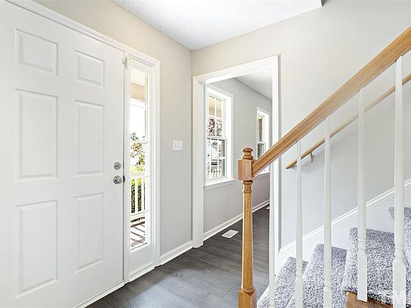 Feels like new! New hardwood throughout with new Charcoal plush carpet in bedrooms. Updated kitchen with sought after subway-tile back splash. Charming 3 bdrm 2.5 ba home in Clayton close to shopping, restaurants and hwy 70/I-40. Large living room with built in entertainment center, Formal Dining room and breakfast nook with large back deck. 3 Bdrm's upstairs, Master has double vanity and walk in closet with cathedral ceiling. Peaceful rocking chair front porch, coy pond in back yard. Huge private yard!