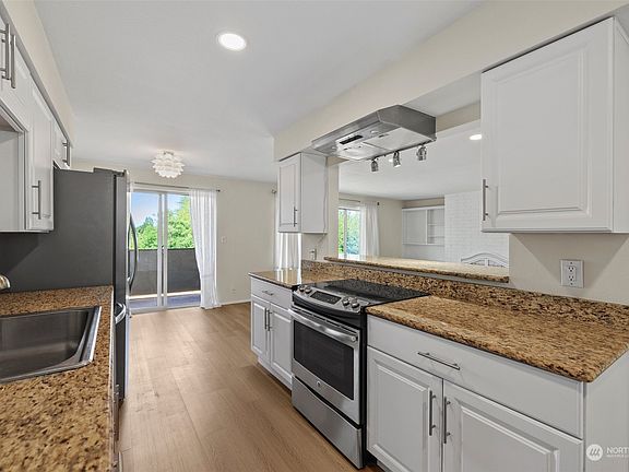 Check out this Edmonds Bowl 2 Bedroom 1 bath condo within walking distance to everything! Amazing sunsets await you on the western facing balcony. Brand new flooring and fresh paint throughout greet you in this upper floor end unit. An updated kitchen, dining area, & breakfast bar make for easy meals or entertaining. You get covered reserved parking, dedicated storage, laundry facilities on site, & a club house for owner use. Seasonal views of the Puget Sound & the Olympic Mountains make this property a treat all year long. The walkability and central location of this Condo can not be overstated. Its just right in the center of everything Edmonds has to offer. Shopping, Restaurants, Edmonds-Kingston Ferry, the Marina, & more. Come see it!!