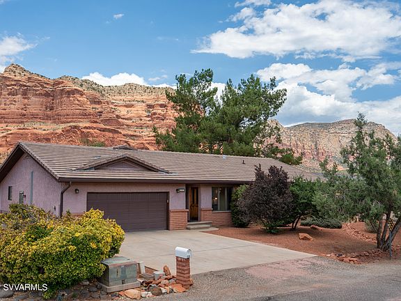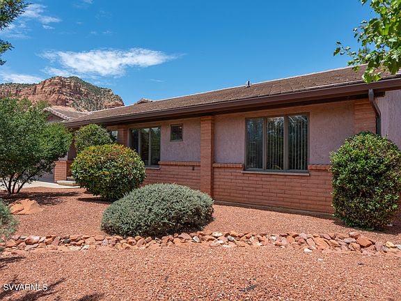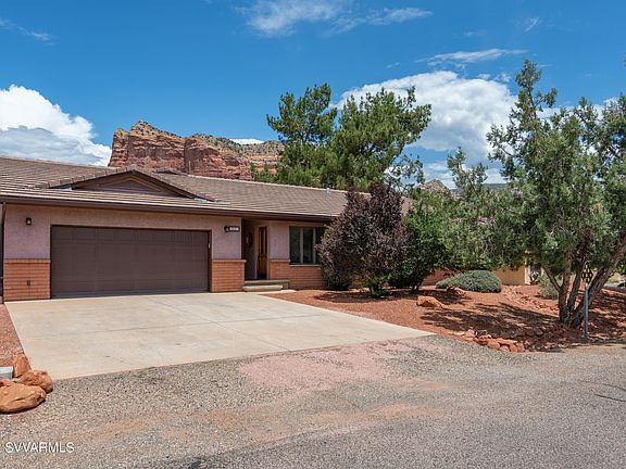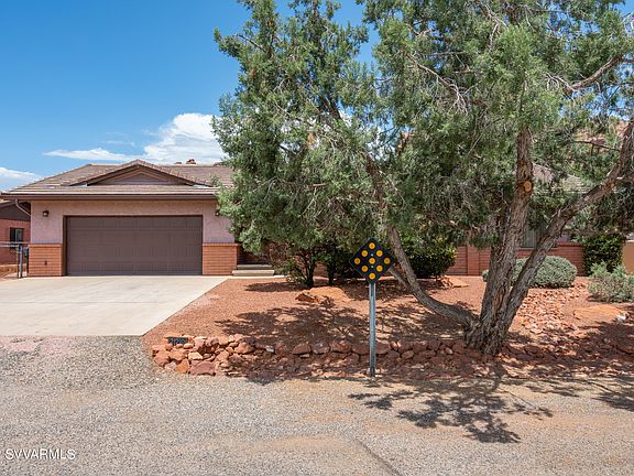 Fantastic home with stunning unobstructed views of Bell Rock and Courthouse Butte! 2 master bedrooms, 3 bathrooms, 1,829 square feet. This home features a unique entry with recessed sink area and beautiful tile work. The spacious great room has vaulted ceilings, parquet floor, and gorgeous stone fireplace. A large skylight provides abundant natural lighting in the kitchen, which features a breakfast bar and plenty of storage space. Each master bedroom has its own master bathroom and plenty of closet space. The large laundry room has a convenient utility sink. The garage features an extended work bench and lots of storage space. There is also a shed out back for even more storage. Entertain friends and family in the large backyard and enjoy the scenic views! New septic system Subdivision amenities include tennis and pickelball courts, public golf course, club house, and restaurant.