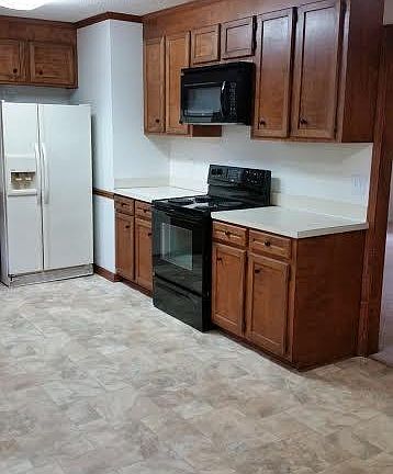 - Kitchen: Counter Tops-Formica, Eat In, Pantry, Cabinets-Stained, Floors-Vinyl