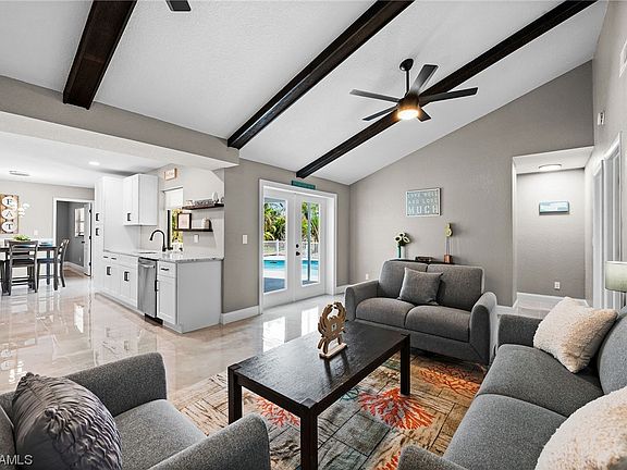 This Exceptional POOL Home offers the Ultimate Florida Lifestyle. Brand New ROOF and AC Unit! This Lovely Home comes Equipped with Vaulted Ceilings with Beams, a Custom Gourmet Kitchen with Granite Countertops, Stainless Steel Appliances & a Statement Range Hood. In the Master Bath you will find Custom Tile and a Wet Closet to Maximize the Space. Attention to Detail Beams from the Design of this Home, The Split Floorplan seamlessly flows out to the Open Lanai where you will find the Refreshing Pool that has been Resurfaced. This Home Offers the Ideal Indoor/Outdoor Florida Living that has everything you need for Entertaining your Family and Friends! Conveniently Located in Cape Coral near Dining, Shopping, Great Schools and the Neighborhoods Best Parks! Don't miss the Opportunity to call this Slice of Florida Heaven your Home