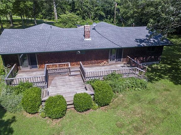 Located on FIVE absolutely gorgeous level acres abutting the Pawcatuck River and surrounded by Hopkinton land trust, this solidly built rambling ranch with two car garage is ready to be updated with your own personal touch. A covered front porch provides entry to the main hallway. Step down into a sunken living room which boasts one wall of glass with sliding door and plenty of fabulous natural light. Step up into the formal dining room with beautiful wood floors, perfect for holidays and family gatherings. Entry from two car garage brings you into a laundry/mud room conveniently located off of kitchen. The spacious kitchen has plenty of cabinets for storage with a large eat in area and breakfast nook that overlooks family room with wood stove. There is a master bedroom suite with a full bath and walk in closet, and two additional bedrooms that share another full bath. Expansive deck off the back, accessed through the family room or master bedroom, is the perfect place to enjoy the peace and serenity of the surrounding nature. The lower level currently has two finished rooms and more space for endless possibilities. The beautiful grounds provide many areas for summertime fun, outdoor family barbecues and memories to be made. Grab your kayak or canoe and walk to the Pawcatuck River to enjoy a day on the water. Call to view this truly unique property!