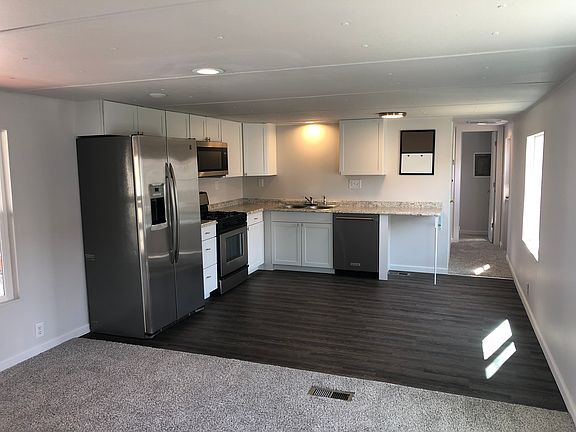 Just completed, fully remodeled to like new condition mobile home in one of the most beautiful mobile home parks in Colorado. Open floor plan, modern colors, look and feel. Large covered deck on front that also has been re-done, gives a sense of size and spaciousness. The house has new flooring in all rooms, new paint, new stainless steel appliances, etc.. A spacious, new kitchen with plenty of cabinet and counter space offers the room and amenities to make fabulous family meals. 2 bedrooms, 1 bath and a large shed alongside the house for additional storage, round out what is an unusually attractive opportunity - don't miss this one! Lots in Golden Terrace are hard to come by! ABOUT THE COMMUNITY Located in beautiful Golden, CO, the all-age mobile home community of Golden Terrace is the perfect place to raise a family. With its great playground, huge community swimming pool, basketball court and well stocked game room the kids will never be bored. Golden Terrace also boasts a variety of community organized activities, a spacious clubhouse, and scenic picnic area to help you feel at home. Always pet friendly, even for large dogs, life in this neighborhood also includes the availability of on-site management to add to your peace of mind. Local area shopping and dining opportunities are also just 1 mile away for your convenience and downtown Golden is just 5 minutes away. This gorgeous family oriented community has a lot going for it and we don't want you to miss out on any of it! Lot Rent is $901 a month. To schedule a time to view this wonderful property please call John K at 720.235.8450, or para Espanol, llame a John D at 720.440.2584