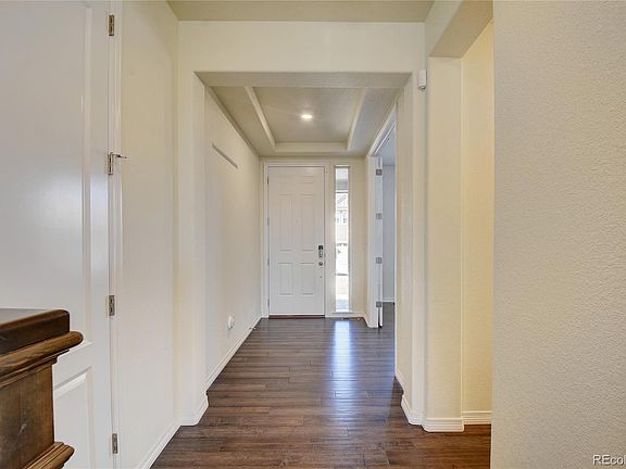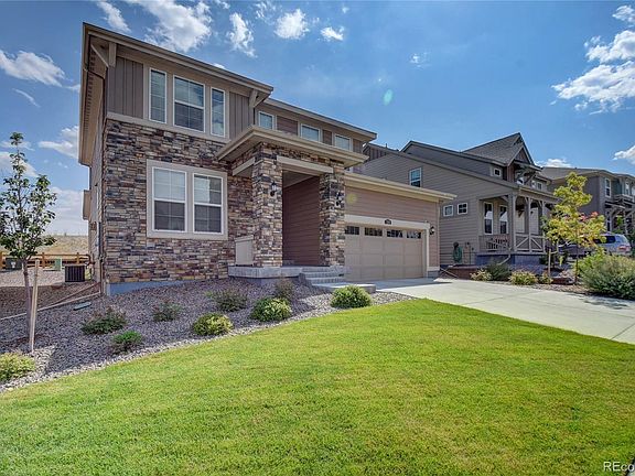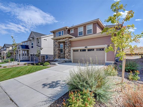 Welcome to your beautiful better-than-new Castle Valley home. Picture yourself living in one of the best locations in Castle Pines that backs to open space. The dramatic coffered foyer welcomes you and leads into the formal study with elegant French doors. The open floor plan features an oversized great room with a gas fireplace and tons of natural light, a cook's kitchen with slab granite island, custom backsplash, upgraded cabinetry, stainless steel appliances and walk-in pantry. Open concept is great for entertaining and plenty of room for everyone. The dining area opens to a covered deck perfect for entertaining or relaxing outdoors at any time of the year. The main floor also features a mudroom and pocket office ideal for that much needed extra work or learning space. The luxurious master suite has coffered ceilings and an en-suite bath with a double vanity, Roman soaking tub, tiled shower with seat, and sizable walk-in closet. Upstairs features three other large bedrooms. Two bedrooms are adjoined by Jack-N-Jill bath and both have walk-in closets and the other has a private en-suite bathroom. Laundry is located on the second floor alongside the bedrooms. The home has an extensive top-of-the-line security system. This energy-efficient home is just over 2 years old and was barely lived in by the previous owner. Close to everything that Castle Pines North has to offer, including Restaurants, Shopping, Schools, Trails. Matterport and virtual tour available.