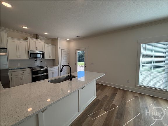 $15,000 Seller Credit!!!! Welcome to this beautiful 4-bedroom, 3-bath home located in Statesboro’s newest subdivision, Evelyn Oaks. Situated on over an acre, this home offers both space and style. Inside, you’ll find a thoughtfully designed floor plan featuring solid surface countertops in the kitchen, stainless steel appliances, a breakfast bar, and an open view into the dining area — perfect for entertaining or everyday living. The spacious master suite includes an ensuite bathroom and a walk-in closet, offering comfort and privacy. Three bedrooms are located on the main floor, with a fourth bedroom upstairs that can serve as a guest room or office. In addition, there is a generously sized bonus room upstairs, ideal for a media room, playroom, or extra living space. Step outside to enjoy the covered back porch, ideal for relaxing or hosting gatherings. With its combination of modern finishes, functional layout, and generous lot size, this home in Evelyn Oaks is a rare find.