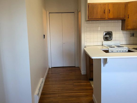 This "L shaped" studio has the perfect nook for a queen sized bed, space for a couch, a desk and barstools for the breakfast bar. Hardwood floors throughout, excellent storage space including a large double closet and a linen closet for additional belongings. A/C unit included, laundry in building, professionally managed. Hot water included in rent, no pets or undergrads. Virtual tour available. Brokers fee of one months rent due at lease signing.