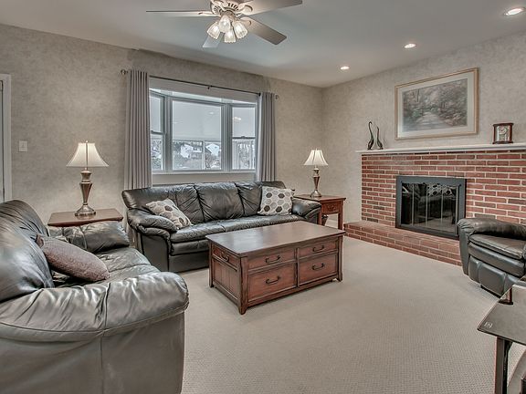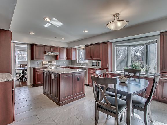 Beautifully landscaped Stonehurst center hall colonial. Lead glass side light front door and ceramic tile floor in foyer. Formal Living room with hardwood flooring and large bay window. Living Room flows into Dining Room with chair rail and continues the hardwood flooring. The Eat-in Kitchen is spacious with Cherry cabinets, recessed lighting, granite counter tops and stainless steel appliances. An abundance of cabinets and wine rack, tile backsplash and tile flooring. Family Room off kitchen with newer wall to wall carpeting, brick fireplace with recessed lighting and ceiling fan. Laundry room and powder room also located on main floor. Door off Family Room leads to the gorgeous Florida Room with Berber style carpeting and views of the private yard. Upstairs Master Bedroom with neutral carpeting and ceiling fan. Master Bath with His/Hers vanity with granite counter tops, ceramic tile flooring and full glass shower. Three additional bedrooms, all with hardwood flooring and an updated hall bath with double vanity, ceramic tile flooring and tiled shower. Full finished basement. Private yard with mature landscaping. This home has great curb appeal!