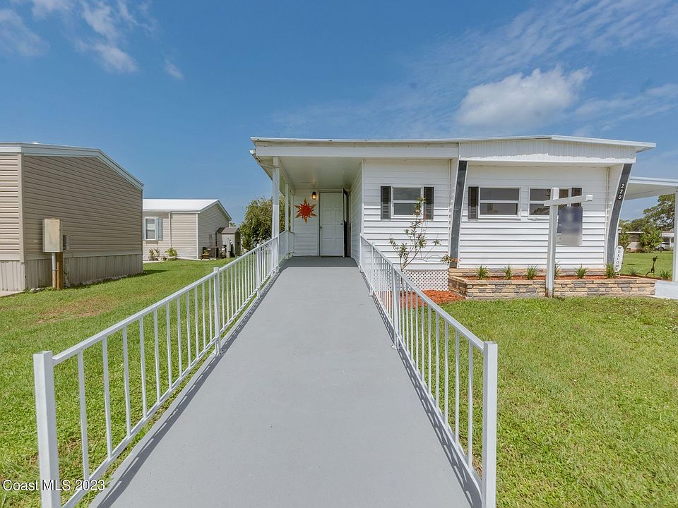 Welcome to Holiday Park! This very popular community has a 24 hr. Guarded Gated entrance, with tons of amenities for an active lifestyle, bring your golf cart & enjoy this peaceful yet vibrant community. This clean newly painted updated home is turn key & spacious as a doublewide! All new plank flooring, Beautiful kitchen & new appliances, new Bathroom vanity & toilets', newer HVAC System, metal roof, bright & roomy with 1200 SF under air. Owners suite is oversized, as well as living area and added family room. W/D inside & included. Storage Shed with new floor to keep your ''extras'' high & dry. Your lot sits on a cul-de-sac with an open park area at the end. The roomy carport will keep your car shaded. HOA is included in your annual taxes $2077/Yr. Less than $174 @ Mo. PRICED TO SELL!