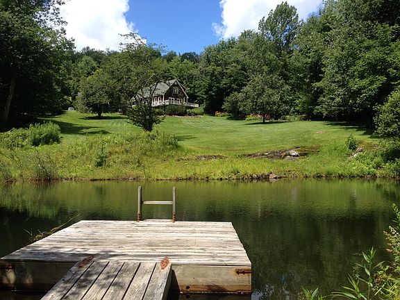 Beautiful cedar sided cape with Mountain View! This 3 bedroom, 2 bath home on 2.54 acres boasts a spring fed stocked pond with dock, apple trees and custom shed. Wood and tile floors throughout, cherry kitchen cabinets, large kitchen island, mudroom entry, formal dining, wood stove and 1st floor bedroom. Two bedrooms upstairs both with double closets and office. Basement is partially finished with walk out door. Covered front porch, cozy stone patio and expansive deck for entertaining! Well pump replaced 2 years ago, hot water heater replaced and chimney lined in spring of 2017. Plenty of storage in basement, 20X28 detached two car garage with loft storage.