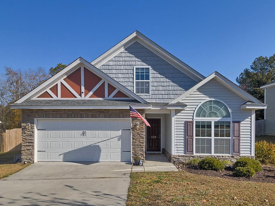 Welcome to 220 Big Game Loop! You are going to love this 4 BDRM, 3 FULL BATH floorplan with TWO BDRMS & TWO FULL BATHS ON THE MAIN LEVEL! You will love this home from the moment you step into the door onto the beautiful hardwood floors and open floorplan. The hardwood floors extend from the foyer throughout the FORMAL DINING ROOM and spacious family room. The kitchen is fantastic w/GRANITE countertops, bar seating, tons of cabinets, PANTRY & eat-in area! The gorgeous master suite is located on the first floor with plenty of room for all of your furniture, a WALK-IN CLOSET, private bath w/DOUBLE VANITIES, GARDEN TUB & SEPARATE SHOWER! BDRM #2 is alslo located on the main level and would make a perfect GUEST ROOM! Laundry room is also conventiently located on the main level! You are also going the LOVE THE UPSTAIRS with TWO ADDITIONAL BEDROOMS, FULL BATH & LARGE LOFT AREA . . . AKA MAN-CAVE, GAME ROOM, MOVIE ROOM ETC! This is home has it all including a HUGE PRIVATE BACKYARD & 12 MONTH HOME WARRANTY FOR THE NEW OWNER!!! Schedule your showing today before someone else makes it their home!