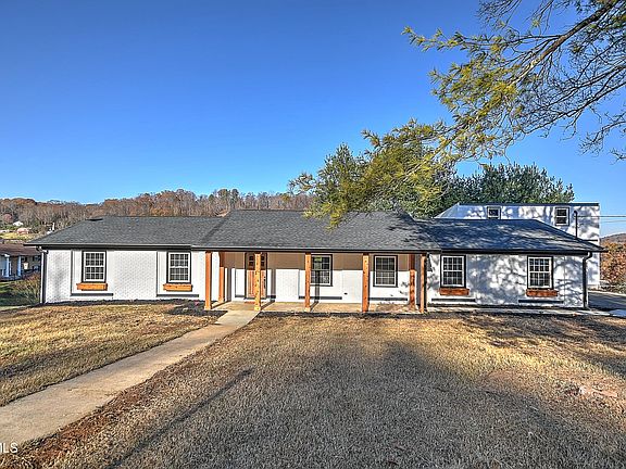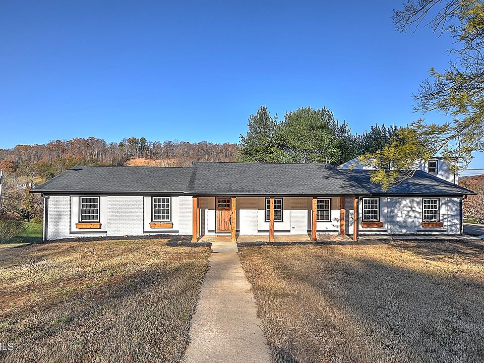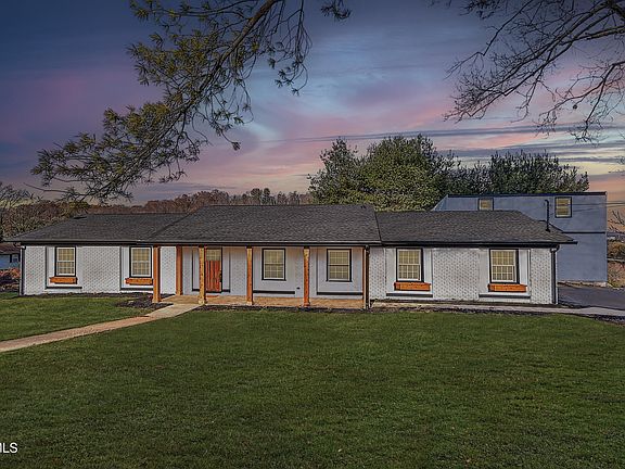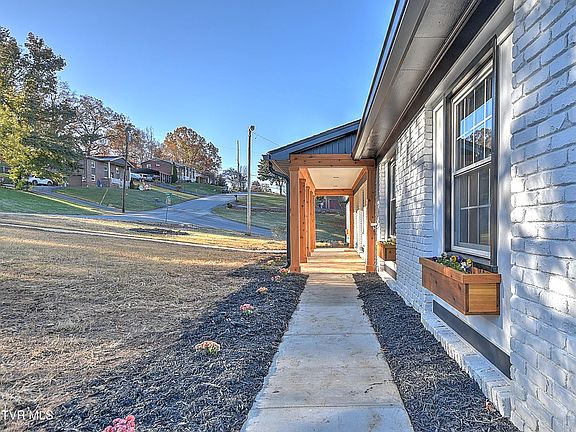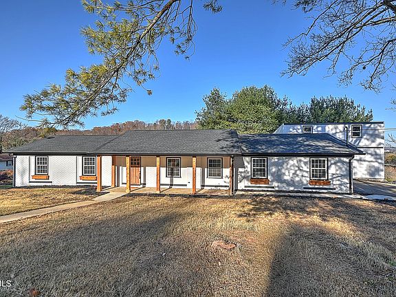 Custom move-in ready one-level home in the heart of Kingsport. You'll fall in love with this one the moment you pull into the driveway. The exterior showcases incredible curb appeal with white brick accented by black features, a cedar-wrapped porch, and a beautiful custom wooden front door. The oversized workshop complements the home perfectly, with board-and-batten siding that ties the look together. The workshop provides ample storage space and is large enough to finish out for rental income or as a guest suite for a loved one, pending approval. Inside, you'll be immediately impressed by the custom touches throughout. The entry welcomes you with gorgeous accent walls, a cozy fireplace, and elegant fluting details on the kitchen island. The kitchen is a showstopper, offering all-new appliances, granite countertops, and plenty of seating space around the island—perfect for entertaining or family meals. Just off the kitchen, you'll find a spacious walk-in pantry providing convenient extra storage. This home features four bedrooms and two full bathrooms, with the master suite serving as a true highlight. The master bath includes fluted wall accents, a high-end vanity, and a stunning walk-in shower that immediately catches your eye. Every detail has been carefully designed, from the custom trim work throughout the home to the generously sized bedrooms. Additional features include a garage, multiple decks for outdoor living, and extra storage space beneath the oversized workshop—ideal for lawn equipment and tools. This property is truly turnkey and offers everything you could want in single-level living, located in one of Kingsport's most desirable areas.