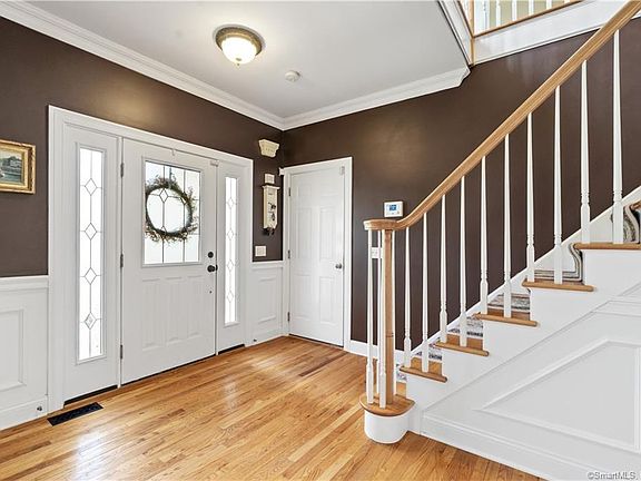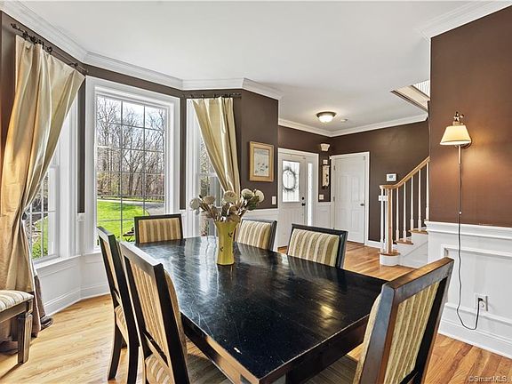 WELCOME TO BLUFF VIEW ESTATES This 4 bedroom, 2 full and 1 half bath colonial with 2-car garage offers an open floor plan, traditional appointments, and hardwood floors throughout the first floor. The dining room off the front entry foyer features a lovely Bay window and leads to the eat-in kitchen and family room. The kitchen offers granite counters, stainless steel appliances, an L-shaped island and pantry. The breakfast nook flows into the family room with a wood-burning fireplace, offering a comfortable gathering spot for friends and family. A living room off the kitchen offers a more private space for quiet conversation. Sliders from the kitchen area leads to the back deck and lower patio. All four of the bedrooms are found on the second floor, including the primary which offers a tray ceiling w/crown molding, walk-in closet and full bath. The bonus room provides an ideal space for an office and play area. The lower level offers an additional 625 SF of finished space, perfect for those looking for a recreation room or second a home office for those working or studying remotely. Located on a 1-acre lot within a desirable subdivision. Close to hiking, biking & horse trails and steps from Bluff Head Trails. Only 1.7 miles to the town beach & boat launch at Lake Quonnipaug, approximately 15 minutes to the center of town and an easy, scenic commute to Hartford and Middletown. Additional amenities include central A/C, radon (air) mitigation system, central vacuum, large shed for additional storage space, portable generator and clean energy solar panels.