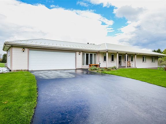 Rare listing on an established road. Cherished property has been well cared for by one family. Ranch home, built in 1992, is 2500 sf, & sits on 5.31 acres. The full, clean, open, walk-out basement is perfect for more living space. Well-planned kitchen, eating area & living room are open & bright & only separated by a fireplace wall. 3 lg, & 1 smallish brms, w/2.5 baths. The working laundry rm off the kitchen, gives a convenient area to spread out, & connected to the enclosed breezeway to the garage. Thats where you will see the NEW CUSTOM MARVIN WINDOWS, valued at $30K, included in the sale (BTW, the house does not need new windows.). Doors from the eat in kitchen area open up to the enclosed patio area giving you a vast exquisite view of the back acreage. To the left is the barn (built in 1969). Both the house & the barn have matching metal roofs. Showings will NOT be set up the traditional way. Due to the health of the Seller, we will only be showing the house during 3 open house times. Fri, May 5, Sat, May 6, & Sun, May 7. All 2-4PM. Offers due on Monday, 12 noon. Please pay attention to the parking signs when you come. There is not a for sale sign on the property.