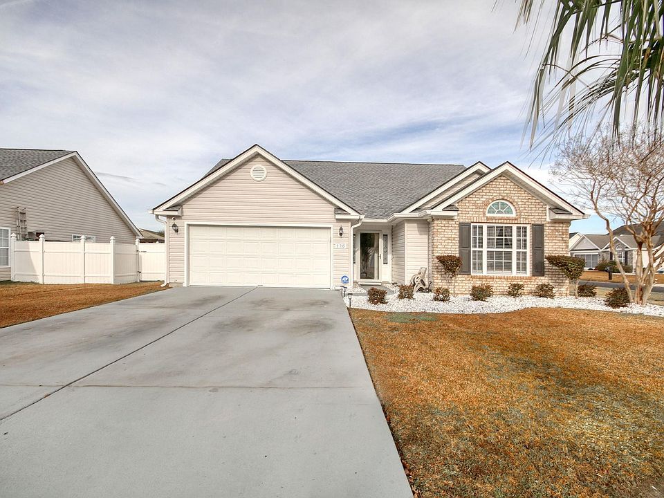 Immaculately cared for 3-bed, 2-bath ranch-style home nestled in the peaceful community of Highland Ridge. This home boasts cathedral ceilings in the main living area. The kitchen features granite countertops, stainless appliances, an oversized pantry, and a breakfast bar. Relax in the fenced backyard or take a short walk to the community pool. Two generously sized guest bedrooms share a full bath, and there's a two-car garage for added storage & convenience. A stone's throw away from Arrowhead golf course, and a quick 10-15 minute drive to the ocean or a 5-minute trip to Coastal Grand Mall for top-notch shopping and dining. Easy access to major highways, including 501, 31, and Hwy 17, completes the package for convenient & comfortable living.