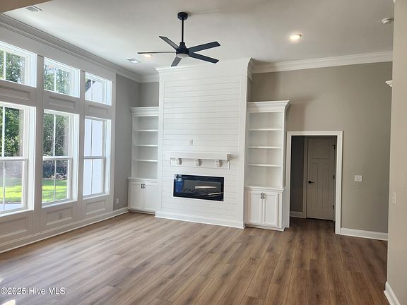 Exquisite new farm house 3 bedroom, 2 bath, and flexroom custom designed home located in Carolina Shores North. Upon entering the home you are welcomed by the grand foyer which features a shiplap ceiling with contrasting paint color and custom trim. There is an office/flex room off of the foyer/living area. The kitchen offers quartz countertops, stainless appliances, a slide in convection oven with air fryer mode, stainless farm sink, white herringbone subway tile backsplash , under cabinet lighting, and a huge pantry with custom wood shelving. The dining area off the kitchen is beautifully finished with high wainscotting and heavy crown molding. Nice covered porch off the dining area that overlooks the fully sodded backyard. The living area comes with an electric fireplace with shiplap and custom built-in shelving. The master bedroom has heavy crown molding with trey ceiling and a large walk-in closet with custom wood shelving that leads to the laundry for easy access. The master bath comes with dual vanities, quartz countertops, and custom tile shower. The laundry room is fitted with custom built-ins and cabinets. The oversized garage offers more storage options and comes with an 8' X 18' insulated garage door. Huge floored attic area above the garage. Close to area shopping, restaurants, and medical.