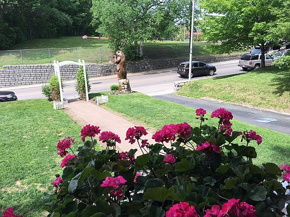 Large home across the street from play park. It's the home with the Bear out front! Walk to everything. Great Bed and Breakfast potential. Walk to everything.