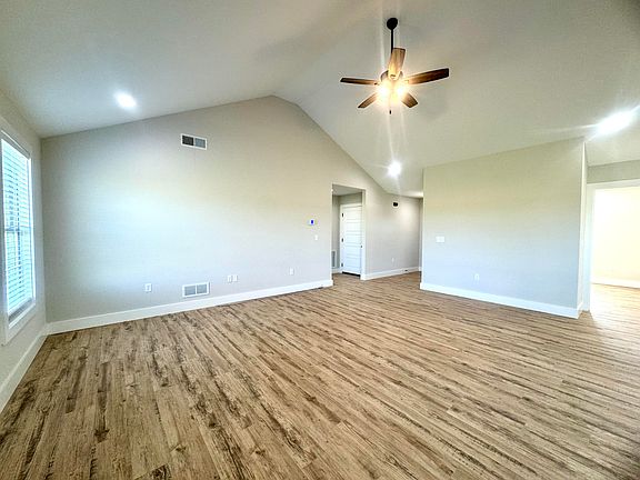 This new construction home in Stoney Creek offers a perfect blend of modern convenience and thoughtful design. Featuring three bedrooms and two bathrooms, the split floorplan ensures privacy while creating a spacious and inviting living environment. The living room boasts a vaulted ceiling, enhancing the open feel of the space, while the adjacent kitchen is equipped with stainless steel appliances and a dining area, making it ideal for both everyday living and entertaining. The home is designed with efficiency in mind, featuring dual fuel HVAC and a tankless water heater to keep utility costs low. Separate utility room makes laundry a breeze! Outside, the property offers a flat lawn that backs up to a peaceful greenspace, providing a serene backdrop for relaxation and outdoor activities.
