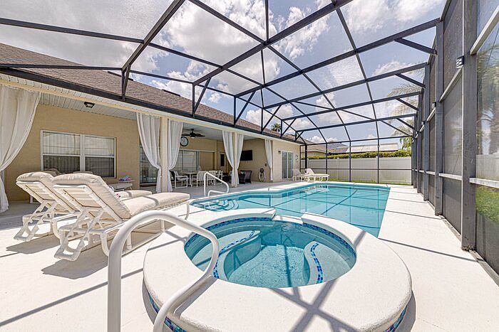 This property is a corporate rental. Please note that the monthly rental price for this property is dynamic and subject to seasonal adjustments. For an accurate quote, provide us with your intended move-in and move-out dates. Property Overview 4BR, 3BT, Sleeps 8 Private Screened Pool & Spa Outdoor Dining & Lounge Area Fully Equipped Kitchen Short Drive to Disney World and Universal Studios Accommodation Living Room: Large open-plan living area with views and access to the pool via double patio doors. Kitchen: Well-equipped kitchen with modern appliance Dining Area 1: Informal dining area with seating for 4 Dining Area 2: Separate dining area with large dining table and seating for 6 Game Area: Garage was converted to a game room, equipped with pool tables, and offers endless entertainment options Main Level Bedroom 1: King-size bed, ceiling fan, flat screen TV, door to the pool deck, walk-in closet. En-suite bathroom with bathtub, shower cubicle, separate WC Bedroom 2: King-size bed, ceiling fan, flat screen TV, walk-in closet. En-suite bathroom with bathtub, shower cubicle, separate WC Bedroom 3: 2 Single beds, TV Bedroom 4: 2 Single beds, TV Pool Area Private Screened Pool & Spa Direct access to the bathroom from the pool deck Comfortable Sun Loungers Enjoy al fresco dining under the covered outdoor area Pool Safety Fence and Pool Door Alarms Ideal Location Situated conveniently near Disney and Universal Studios, our home is surrounded by popular restaurants. The self-check-in process ensures a seamless start to your getaway. Family-Friendly Amenities: Traveling with little ones? Enjoy complimentary use of baby and toddler items, including highchairs and travel cots. Worry-Free Stay: Rest easy knowing our home and pool are professionally managed and maintained, ensuring a worry-free and delightful stay. Immerse yourself in the perfect blend of comfort, entertainment, and convenience at our enchanting vacation home. Book now for an unforgettable escape! Ellis Exclusive Villas We are offering a wide selection of family-friendly vacation homes in Orlando. We have vacation rentals of all types, from 3 to 10-bedroom homes with private pools. Dedicated to creating the perfect vacation. Our local team is on hand to respond to your needs 7 days a week. Book your perfect Florida family vacation getaway today. We look forward to welcoming you! Notes POOL HEATING: This is recommended from October through April to enhance the enjoyment of your pool time. This home has a pool heater and requires a 3-day minimum for the service to be activated. The cost is $40 per day and is best added prior to arrival so the pool is warm when you arrive. LAST MINUTE BOOKINGS: Bookings made within 14 days of the arrival date must check-in during office hours before the access information is released. The credit/debit card used for payment must be shown along with a valid driving license or passport in the same name as the card. As well as a utility bill with the same address as the card billing address. Pre-paid cards are not accepted. **Guests will be required to sign a Rental Agreement and provide a copy of their ID. Contact us to schedule a showing.