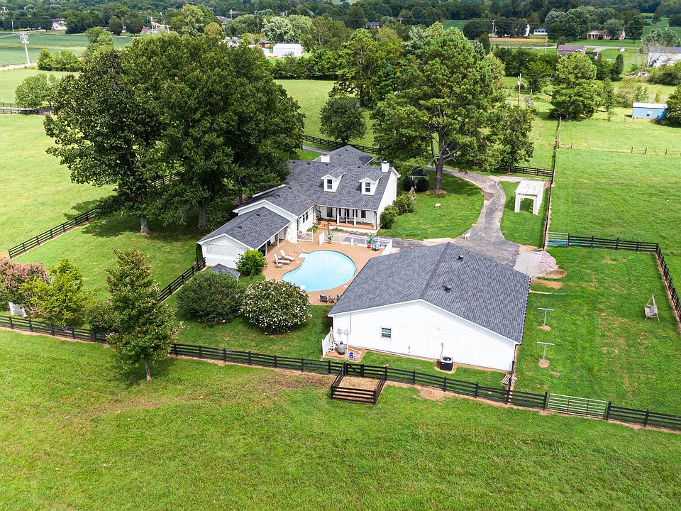 Beautiful 22 acre farm, open level pasture, backs up to Spring Creek, pond, 40x60 large open barn with 12ft leans and tack room, small barn offers 3 stalls, all pasture fenced. Gunite inground pool with pool house for additional living area with kitchen and bathroom. Detached 2 car garage with storage. Flexible living space or 4th bedroom on second level. Large walk in closet Primary bedroom and extra storage off primary bathroom. Pool house 700sq ft includes Bedroom, full bath, LR/KT combo ( Past owner used as a beauty salon). Granite countertops in kitchen, breakfast bar between living room/dining room and kitchen. Roof 2021 past owners, fireplace in family room gas logs (propane) seller has never used. ( Not warranting if it works). Hot Water Heater 2023.