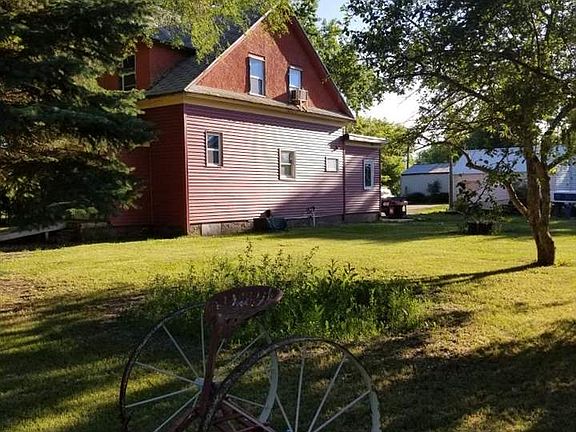 Make this home your great escape to small town living! This 5 bedroom 2 bath home is in the process of some renovations and can be finished with your imagination. Some newer features include windows, vinyl siding, 200 amp breaker box, furnace & water heater to name a few. Perfectly located on a corner lot with alley access, 2 storage buildings and mature shade trees & bushes. The large eat in kitchen has lots of cabinets and is open to the spacious living room with hardwood flooring and corner windows for plenty of natural light. An unfinished bathroom, 3 bedrooms with large walk in closets & hardwood floors completes the upper floor. The kiddos have bus service to the door from your choice of Max or Garrison schools! There is enough land and extra siding to build that dream garage!