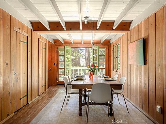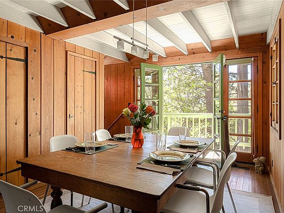 A treasured getaway, a writer’s retreat, a cozy family home: any way you envision it, a lifetime of cherished memories will be created in this classic 1935 home. Perched among the evergreens, this property is a vision that lives in every mountain-lover’s imagination. A vintage charmer is a testament to the lure and captivation for generations of families. Enter the masterful layout, which is blanketed by the warmth of beautiful wood. Stepping through the front door, the original limestone fireplace captures your attention, directs your eyes to the vaulted ceiling, and sets the stage for crackling fires and cozy evenings. The fine craftsmanship of the original windows on every floor frames the impressive forest views and provides a quintessential mountain ambiance. From the living room, follow the impressive flowing floor plan, which provides three unique living spaces on the main level. The wood floors impart understated warmth and comfort throughout. Stepping through double French doors from either the living room or dining room to your expansive deck naturally calls for barbecuing and relaxing among the sounds of the birds (from eagles to hummingbirds) and whispering wind through the trees. The top-level primary suite with sitting area, office and private deck offers a special sense of peace in the trees as you enjoy your first cup of coffee in your private getaway. The two lower-level bedrooms with private bath for guests or family perpetuate the privacy experienced in the home. Here is an opportunity to ideally and proudly host gatherings of family and friends in this retreat-like setting. Its location in the coveted Alphabet Lanes provides lake rights, proximity to lake paths and trails and a short distance to Lake Arrowhead Village. One of California’s rare areas that enjoys each of the four seasons, Lake Arrowhead and 220 C Lane are the ultimate havens to both witness and relish in your own sanctuary. Own this jewel of incomparable quality, charm and nostalgia, intertwined with modern luxury, and become a part of its unique history. This is not just a home or a property; it is an experience, a uniquely transformative one for the soul.