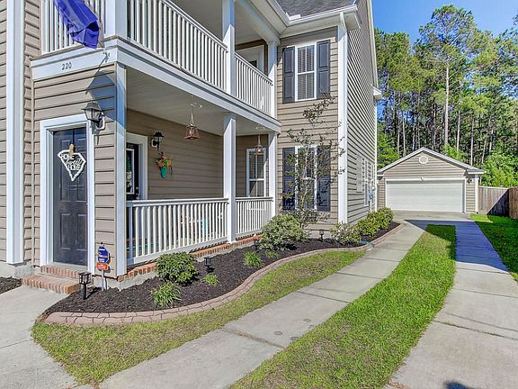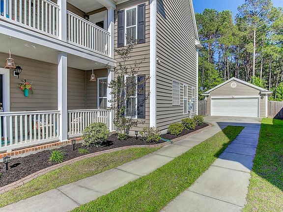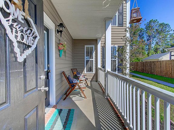 Beautiful Charleston single in Cane Bay! This 4 bedroom/3.5 bath home has pretty wood floors that flow through the downstairs living areas. The formal dining room is light and bright. The kitchen has granite, pantry, and breakfast bar. It opens to the spacious family room with gas fireplace. The screened porch is perfect for relaxing. Master bedroom is downstairs with a walk-in closet and master bath with a separate shower and garden tub. Upstairs has a large loft space with access to the upper porch.Two bedrooms share a jack-n-jill bath. There is also an additional bedroom and full bath. The yard is completely fenced and has a custom fire pit. 2 car detached garage. Lot backs up to woods. Wonderful family home!