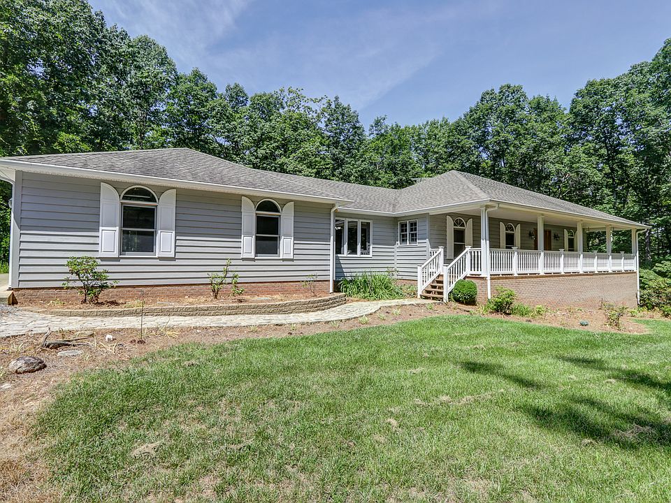 Looking for privacy, seclusion, & acreage? Look not further. This sprawling 3 bed, 3 bath ranch is surrounded by 5 acres of mature hardwoods offering the privacy your looking for. Outside amenities include expansive 44' covered front porch, & 2 rear decks totalling 632 sqft, perfect for backyard cookouts. Recent improvements include gravel drive, stained exterior including decking, new deck & porch railings, paint in living room & basement, & new garage doors. Main level offers 2,232 sqft of finished living area, hardwood floors, large living room w/access to rear deck, master bedroom w/en suite bath & cedar lined walk-in closet, 2 additional bedrooms, full bath, formal dining room w/french doors, den, large kitchen, and enormous 3 car attached garage offering 961 sqft. Walkout basement offers full bath, workshop area, and additional 2,169 sqft of unfinished space that's perfect for storage or ready to be built out for the ultimate man cave. Septic pumped 4/26/18, Zoned Agricultural.