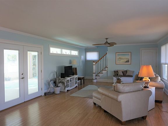 From the moment you walk into this Bay Block Beauty, you feel relaxed, calm, and inspired to enjoy all that this home has to offer. An expansive, open Floor Plan set in a modern, custom architecture speaks to you in many ways... rejuvenate from your hectic schedule in the tranquility and calm that it offers, or "Let's Party!" and enjoy the many aspects of this home that makes entertaining a delight. Downstairs boasts a large, living room with 9' French Doors that open to the indoor pool area that features views of the backyard, skylights, and a bar. A lovely electric fireplace adds warmth and ambiance to the living room. To the left is the dining room, and beyond that a beautiful custom kitchen with skylights, a wine cooler and a center island, which looks out onto the deck and off to the den area. 12' Sliding French Doors onto the deck which allows in so much natural lighting. In addition, there is a mud room/Butler's Pantry that has been upgraded to include a smaller, intimate 2nd kitchen. Hardwood Stranded Bamboo Floors compliment the look and feel of the downstairs. Stairways from both sides of the home lead to the upstairs, which features 3 bedrooms, a small corner office, and 2 baths. Both the Master and the 2nd bedroom feature balconies with water views. The Master Suite has a large, walk in closet, and an electric fireplace. A fully equipped laundry is conveniently located upstairs. Crown molding, high baseboards, and custom blinds complete this beautiful home.