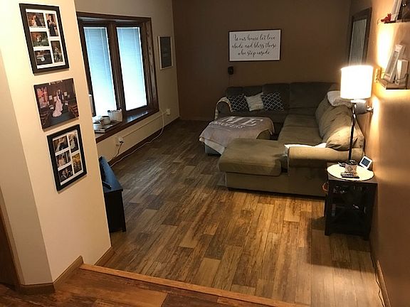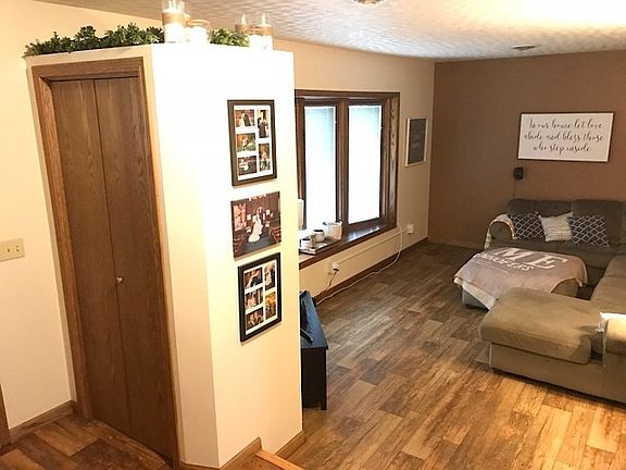 This comfy, cozy home is the perfect retreat! Featuring 1,200 square feet of main floor living space, lots of storage, nice updates and a great basement, this property is a must see! Entering the home, the front entry welcomes guests with a large sunken living room and convenient coat closet. New flooring and interior paint create a cozy, relaxing space. The large front bow window with built-in blinds allows for sunlight to fill the space. Just off the living room, is the open kitchen/dining area.