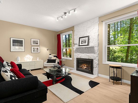 Welcome to this beautifully updated 2 Bedroom, 2 Bathroom condominium in Mountain Park! This home boasts an array of modern features added since the current owner's purchase. Step inside to the sunken living room, with gorgeous Luxury Vinyl Plank flooring (which can also be found throughout the main level) and a gas fireplace, truly the perfect space to relax and unwind. The stunning kitchen features granite countertops and stainless steel appliances including a newer induction range. Gather with friends and family around the dining room table or lead them to the private covered back deck, overlooking lush trees and hiking trails. 1 bedroom on the main level with a full bathroom and 1 bedroom with built in bookcase upstairs with a full bathroom. Plenty of storage throughout, including in the oversized 1 car garage. Enjoy access to Mountain Park amenities including the pool, sauna, tennis court, gym and hiking trails. Convenient access to I-5, Lake Oswego, Downtown Portland and OHSU. This one checks all the boxes and is one you don't want to miss!