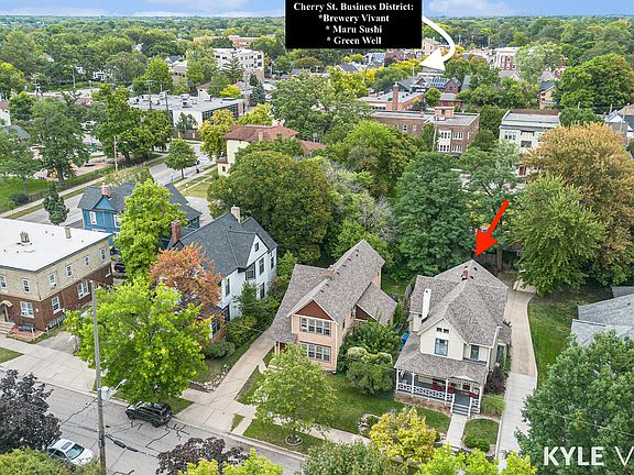 Wonderful historic Cherry Hill home loaded with character including gorgeous spindled staircase railings, pocket doors, original hardwood floors, crown moldings and trim detailing. Unique fieldstone hearth and wood stove insert in the cozy den. Remodeled kitchen with solid Amish made cabinets, copper ceiling details, granite countertops and center island. Convenient main floor laundry. Primary bedroom suite has a brand new bath and huge walk-in closet. Just a short stroll to all the happening places along Cherry and Wealthy Streets; minutes from downtown and East Grand Rapids.