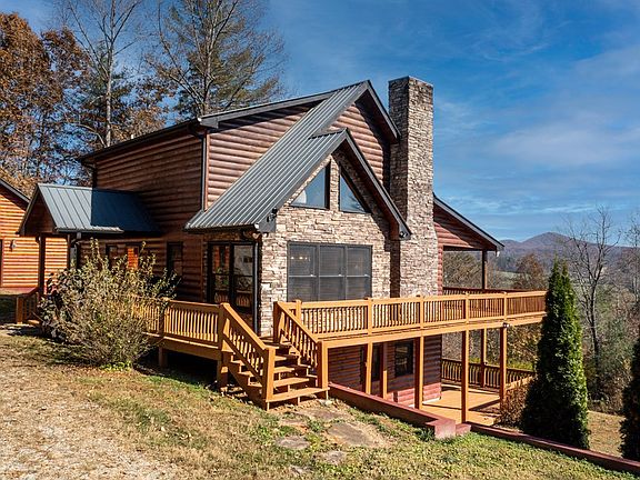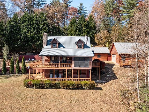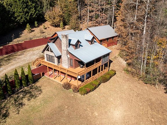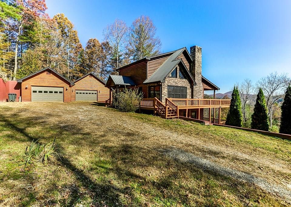 Investor's Dream or Family Oasis in the Heart of Georgia Mountains. Welcome to this magnificent 3-story country/rustic style home nestled on 2.58 acres between Blairsville and Blue Ridge, GA. This property offers year-round mountain views and is tailored to both investors seeking potential rental income and families craving a serene retreat. Key Features: Great Room w/ gas fireplace, kitchen, breakfast area, all showcasing spectacular views. Bedrooms/Bathrooms: This spacious home boasts 4 bedrooms, comfortably sleeping up to 12 guests, and features 3 well-appointed bathrooms, ensuring ample space for families and visitors. Garages: Two detached garages, designed in harmony with the main house architecture, provide space for up to 6 vehicles. One garage can be easily used as a workshop. The property is offered "AS IS," reflecting its well-maintained condition. Enjoy the tranquility of privacy, shielded by flowering shrubs, mature trees, and fruit trees, all meticulously landscaped. Embrace the Georgia mountain lifestyle with decks on both upper and lower levels, offering generous space for BBQs and gatherings with family and friends. The large yard provides ample room for outdoor activities. Versatile Metal Building: A 40 x 30 metal building, with a poured floor is located on the east corner of the lot. It can accommodate up to 6 vehicles, ATVs, motorcycles, or serve as a fantastic workshop with abundant storage capacity.