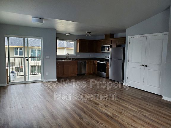 AVAILABLE NOW! No pets allowed. This upstairs 3 bedroom, 2 bathroom unit offers 1,048 sqft of comfortable living space in a well-maintained fourplex. The home features a bright and open layout with a stove/oven, refrigerator, and dishwasher included in the kitchen. Washer and dryer hookups are provided for your convenience. The unit is equipped with a mini split system offering both heating and air conditioning. One dedicated off-street parking space is included. Common area landscaping is maintained by the property, and water, sewer, and trash services are also included.