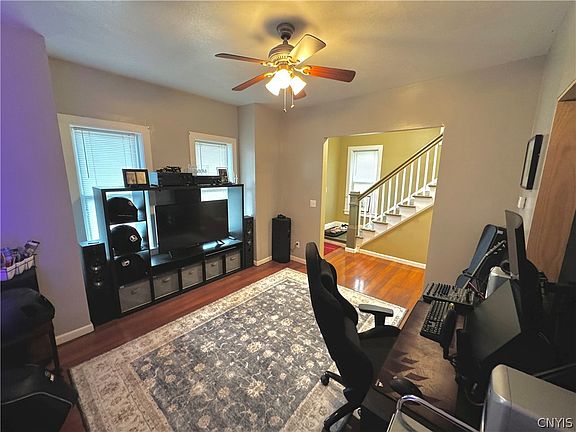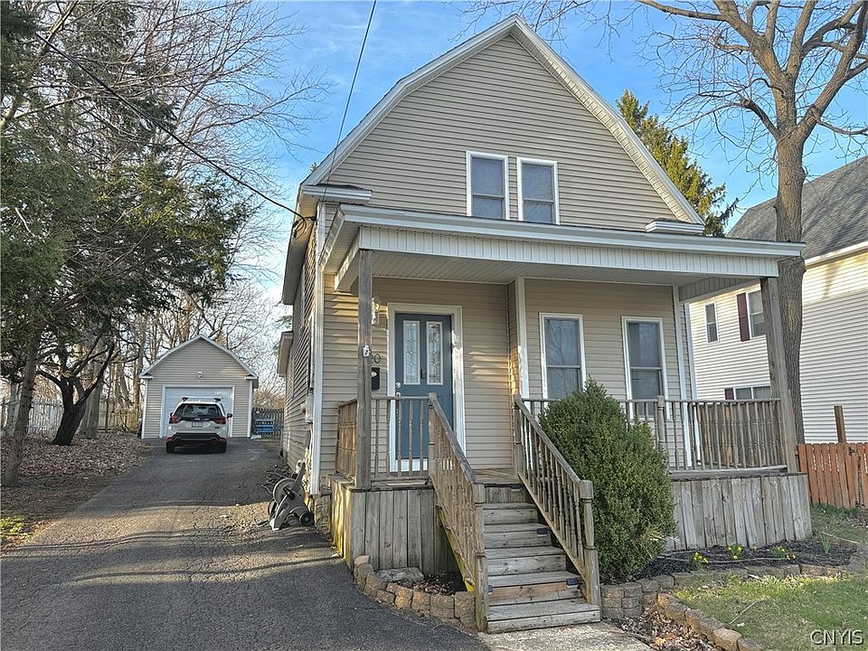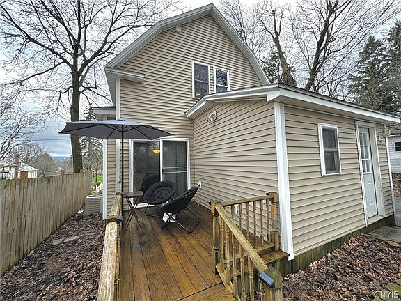 This 2 bedroom, 1.5 bath is in pristine condition and has one of the nicest backyards for being in the city! There's an open kitchen/dining room layout, living room, mudroom and a half bath/laundry room all on the first floor. You can hang out on the deck and enjoy grilling while taking in the views of your almost half an acre fenced in back yard! Upstairs you'll find two bedrooms and the full bathroom. There's a detached 1-car garage and shed that provides plenty of storage. Plus central air to keep you cool in the summer heat!