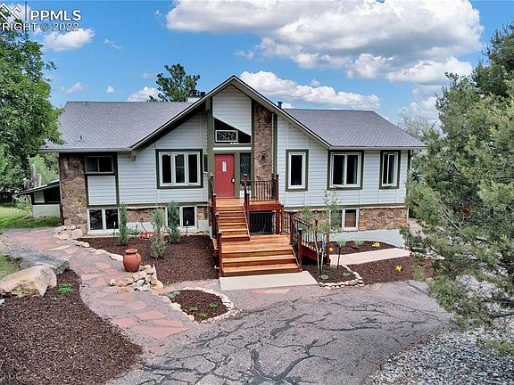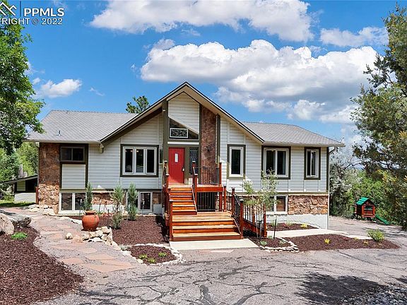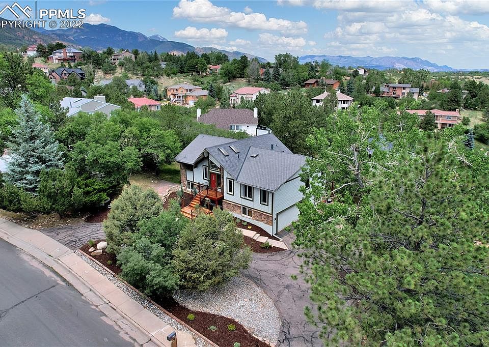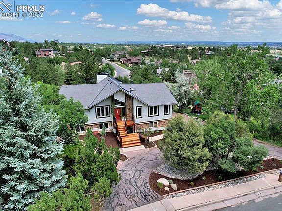 Jaw dropping city and foothill views off a 50' deck are the first thing you notice about this amazing home, but there's a multitude of noteworthy features! The Tigerwood front deck opens into a beautiful entryway with site-finished hardwood floors and vaulted ceiling. That same vault carries through the Great Room where you fall in love w/ huge windows and expansive views! Great Room also features a beautiful fireplace, the same site-finished hardwood floors you'll discover throughout the rest of the main level, & plenty of space for entertaining. The kitchen is a marvel of luxury and function w/ a large footprint, plenty of counter and storage space, and a bar height island offering seating for the whole family. This is a chef's kitchen w/ custom granite, luxe ss appliances, abundant lighting, & designer touches throughout. The over-size Dining Room is perfect to take advantage of epic views; imagine dining by candlelight here while watching the city lights twinkle below. The East wing of property includes guest quarters w/ attached en suite and spacious walk-in closet. Master bedroom is large, includes sliding glass door access to rear deck, walk-in closet, and an additional closet for plenty of storage; en suite is spacious and includes a beautiful soaking tub! Downstairs you'll discover an additional three bedrooms, one with an attached bath. Entire basement was recently refurbished and it shows! Walk-out to the rear yard affords the space plenty of light. Large secondary living room includes a wood stove, wet bar, and access to the Southwest-facing, four season sun room… wow! Both top and bottom decks (and front deck) are recently renovated and in stellar condition. Radiant heat boiler is brand-new. Basement concrete slab and sewer lines are brand new. Outside is gorgeous brand-new front landscaping. Too many features to list! AMAZING location w/ quick easy access to Fort Carson, I-25, Broadmoor, Downtown, or even East to the Airport.