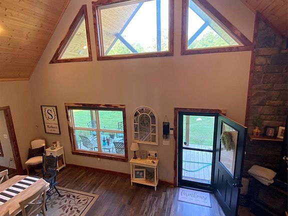 Come sit on the cedar covered porch and sip coffee while enjoying the view of the sunrise in the country! The deer are a common staple in this yard! Beautiful 2 story home on 20.66 acres. 40 X 60 spray foam shop with heat. Endless hot water tanks. Commercial oven and microwave to stay with the home. Granite countertops, covered porches, fire pit, pergola in the front yard. This home has 3 bedrooms including a master suite and an upstairs office or loft.