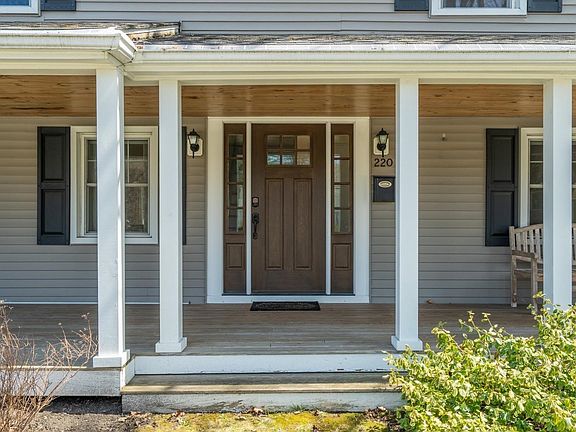 The American Colonial architecture makes for one of the prettiest homes on any block. The front of the home is striking, and the classically inspired front door at the center, multi-paned windows placed on either side with shutters offers a pleasing symmetry to the exterior. Around for centuries the Colonial-style home remains an enchanting, popular example of traditional home design and quintessential New England feel and look. Beloved, practical, and cozy this home features a main floor complete with a living room with wood burning fireplace, open dining area and if you need a home office, or den, the room overlooking the front yard would be the room of choice. Hardwood floors throughout these rooms. The nicely updated kitchen with its island, attractive cabinetry, pendent lighting and good work space will serve as the hub of the home. Four generous sized bedrooms with ample closets in each and a modern bath comprise the second floor. This house, with finished bonus family room in the basement, features 2,400 sq ft of living space. The home has built-ins, nice color palette, vinyl replacement windows throughout, good storage options and a detached garage. On the exterior you have columned front porch, mature trees, shed, large composite deck overlooking the backyard. Located just one mile from Pine Hill Park which offers 16 miles of single-track trail spread over 325 acres of terrain offering some of the very best mountain biking, trail running and hiking.