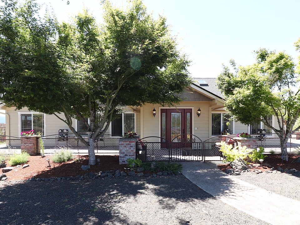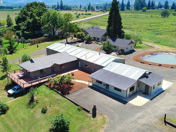 Beautiful executive home offering 3076 SFT of open living space, 3 Br. 3 Ba., a den/office, family room, and large great room with high ceilings. You'll love the hardwood & tile flooring, granite counter tops, outdoor kitchen (with pizza oven), large covered deck and wrap around patio with burn pit & built-in seating. This fully remodeled home is handicap/wheelchair accessible, on 5 flat fenced acres in Lookingglass. Apx. 3 acres pasture, pond, and 3 stall horse barn. ** The 1200 SFT addt. living space/guest quarters has 1 Br. 1 Ba., laundry, large deck, and kitchen. Perfect for multi-family/income potential, foster care, tasting room, VRBO, or Aribnb. ** The additional 1200 SFT unit has 2 office/Br's, 1 Ba., large open room with lots of storage, and beautiful large reception area. Possible uses: Office, rental, meeting room, day or foster care, Airbnb, etc. ** The large shop is fully equipped with an office, 1/2 Ba., car lift, locked storage, 2 entry bays, and attached 3 car garage. ** Property has 3 entrances to property to/from Lookingglass Rd. and is all handicap/wheelchair accessible. Ready for a tour?