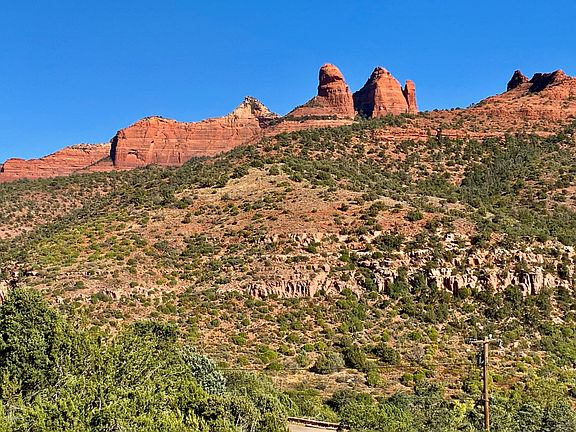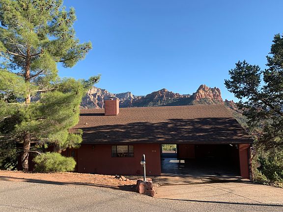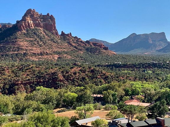 Hold onto your socks when you check out these unobstructed PANORAMIC red rock views, because this view will knock them right off your feet!! Look out over Uptown Sedona and Oak Creek. You can remodel a home, but you'll never be able to remodel views like these. There is a brand new composite deck, and the home was pre-inspected and many issues have been addressed. Bring your imagination for remodeling, or the home has been professionally cleaned, windows and carpets too, and you can just move right in. Drive into the carport and enter on the top floor which has the main living area. Kitchen, living room, main bedroom and bath. Downstairs has a huge den with wood burning beehive fireplace & bar area with sink, second bedroom, second bath and laundry room.