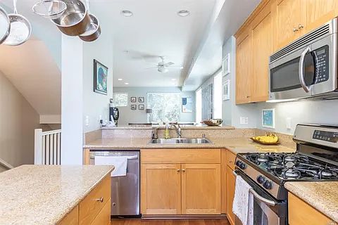This 3 story Condo offers two spacious upstairs bedrooms, each with its own private bathroom - perfect for roommates or guests. There is an extra bathroom on the kitchen/living room floor. This place includes AC and heater, an in-unit washer and dryer, and access to an on-site fitness center just steps away. The oversized two-car garage offers ample parking and storage, with extra guest parking available for visitors.