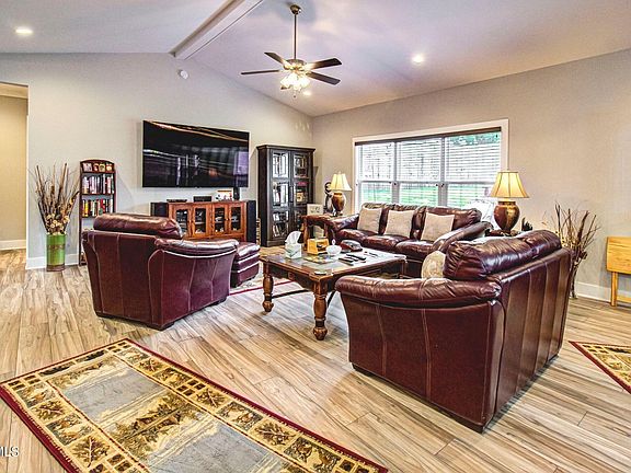 This immaculate 3-bedroom, 2.5-bathroom haven is a gem of comfort and style. A generous 2181 sq ft, with city water and sewer, luxury plank flooring, and a split bedroom design. Inside, stainless steel appliances adorn the kitchen, while the breakfast bar and pantry offer convenience. The living area with cathedral ceilings opens to a covered back deck, perfect for relaxation. The master bedroom features two walk-in closets and a lavish attached bathroom with a double vanity and walk-in shower. Two additional bedrooms share a jack-n-jill bathroom. A half bathroom and laundry closet add practicality. No HOA. Enjoy the covered front porch, a 2-car garage, and the security system for peace of mind. Close to Buc-ee's, Food City, and the interstate, this home is a sanctuary of modern living. Don't miss out - schedule your visit today!