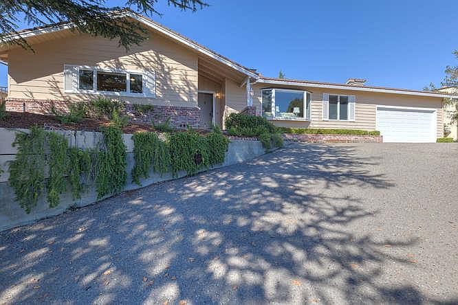 Sweeping Canyon & Bay Views! One Level Home on 13,700 sqft lot! Huge Potential & Possibilities! Up slope drive with plenty of extra parking! Formal entry, spacious Living Room with brick fireplace, Dining Area, Family Room with 2nd brick fireplace adjoins the Kitchen, 3 good sized Bedrooms including Master Suite, 2 full Baths, interior Laundry Room, attached 2 car garage. Handsome hardwood floors thru-out, white dual pane windows. Very light and bright. Huge rear yard goes beyond the rear fence, includes area with steps up the hill. Endless potential! Feels like a retreat above the working world. Very Serene! Great location, near shopping and schools. Beautiful Views!