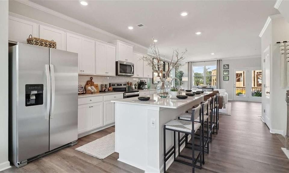 New beautifully crafted easy living three story "Asbury 1" floor plan in the award winning Hapeville community 10 minutes from Hartfield Jackson ATL Airport. The Asbury 1 floorplan offers three bedrooms each featuring en-suit bathrooms, a half bath on the second level totaling 3.5 baths in total. The ground level includes a two car garage, a nice sized bedroom with an en-suit bath. The second level includes an open concept layout with kitchen overlooking dining and family room. Revwood flooring throughout the main, chef-inspired kitchen offers a large island with quartz countertops and stainless-steel appliances. The upstairs features two generously sized bedrooms along with a washer & dryer area, luxury vinyl stairs throughout along with high ceilings. In addition to the fantastic location, home owners will enjoy the close proximity to a selection of bars and restaurants in the Hapeville location with a short 15 minute commute to midtown Atlanta.