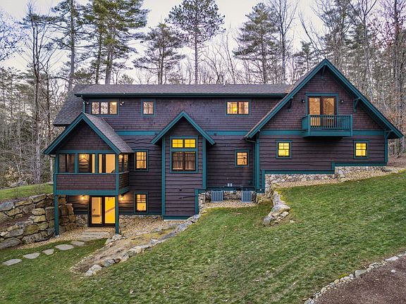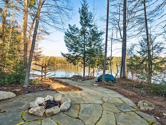 Located less than 10 minutes from Center Harbor and Meredith is Little Brook on Squam Lake. Situated on 12.28 acres and with 473 ft of lakefront this home is both extremely private and exceptionally well built. The home blends modern amenities with a natural wood exterior and stone facade. The interior is finished with rustic birch floors, tongue and groove wood ceilings and solid shaker doors. The great room is highlighted with a stone fireplace accented by a driftwood mantle. Located off the great room is a large screen porch with a second wood burning stone fireplace perfect for seasonal entertaining. First floor primary suite features a large walk in tile shower and jetted tub. The primary suite also has its own private screen porch. A second suite is located up stairs along with two large guest rooms. The lower level family room has a natural wood bar and full bath with walk out access to the side yard. Additional features of the home include radiant heat, central air and heated garage. A second garage with enlarged bay and work shop is ready for additional toys. Following the stone tile path towards the lake you will find a boat shed that will accommodate canoes and kayaks. Just beyond is a perched beach and 40 foot seasonal dock. Also by the water's edge is a stone fire pit. In 2023 the entire house was stained and the interior was completely painted. This custom home is as turn key a waterfront home as you will find and is ready for you to make Squam Lake memories.