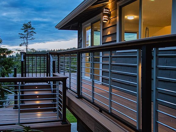 Cape George Colony treasure! Stunning 3 BR view home perched on Colman circle commands sweeping sunset panoramas of Protection Island, marina & San Juans from your custom Trex deck. Exceptional value creates a rare opportunity for you. Gourmet kitchen showcases premium Thermador appliances, custom cabinetry w/LED lighting & luxurious Silestone counters to cook with a view. Self-contained lower level apartment offers flex-space and/or rental income potential w/ full kitchenette and private entry. Mature landscaping features terraced gardens plus two deer-proof fenced areas. World-class amenities include marina, beaches, pool, fitness center and trails. Don't miss this Cape George gem - minutes to Port Townsend's charming historic waterfront.